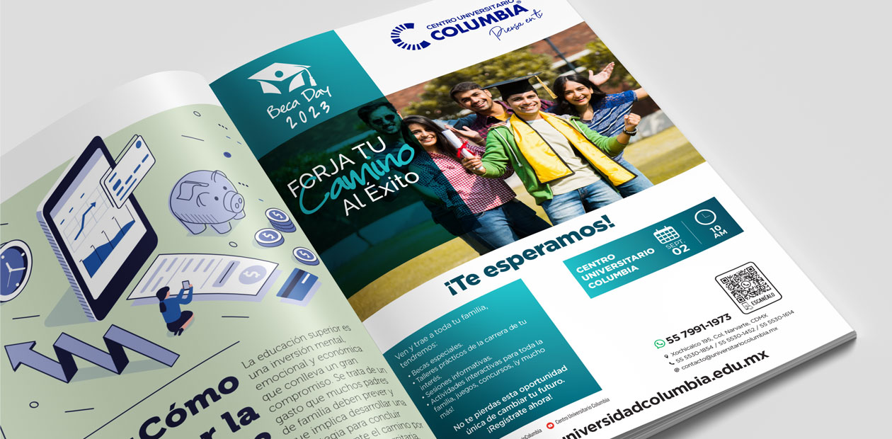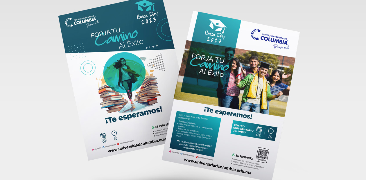 Diseño de flyer y anuncio de revista para difusión del Beca Day 2023.