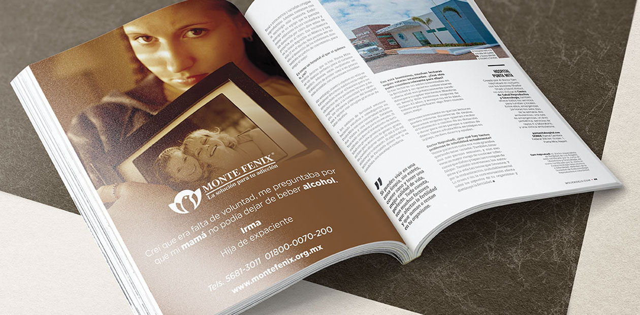 Campaña de publicidad testimonial en diversos medios impresos, para crear conciencia acerca de la enfermedad de la adicción.